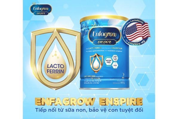 Enfa Enspire là dòng sữa công thức được bổ sung Lactoferrin, giúp hỗ trợ tăng cường đề kháng hệ hô hấp và cải thiện sức đề kháng tổng thể cho bé. Sản phẩm còn nổi bật với các thành phần quan trọng như: