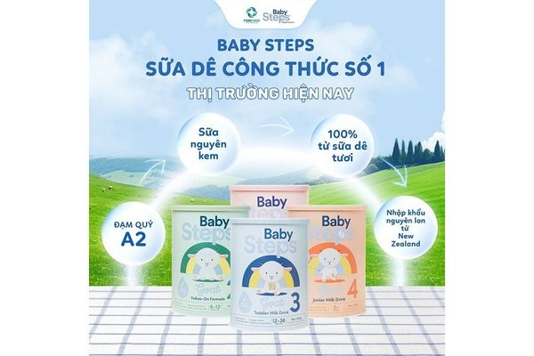 Sữa dê Baby Steps chứa có đạm A2 quý giá, nguồn canxi dồi dào, và DHA cao, vừa giúp bé tăng cân, tăng cao và phát triển trí não siêu tốt, trong khi đó không hề gây táo bón, đầy hơi, giảm tình trạng dị ứng.