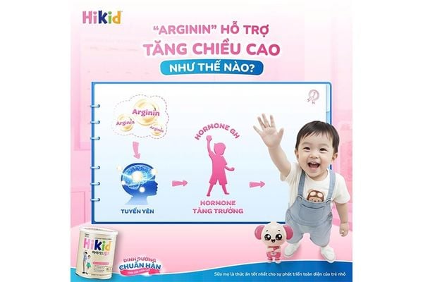 Arginin là thành phần được các chuyên gia dinh dưỡng Hàn Quốc chú trọng bổ sung trong Hikid để mang lại hiệu quả hỗ trợ tăng chiều cao toàn diện.