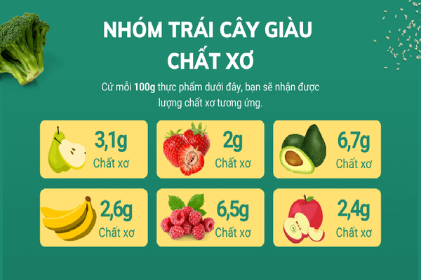 Một số hàm lượng chất xơ có trong các loại trái cây