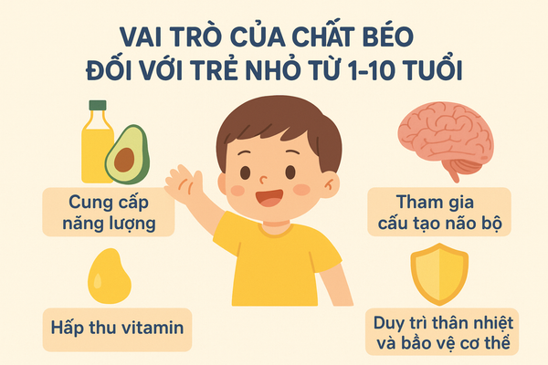 Chất béo là một trong bốn dưỡng chất thiết yếu đóng vai trò quan trọng trong quá trình phát triển toàn diện của trẻ em, đặc biệt ở giai đoạn từ 1–10 tuổi, khi não bộ, chiều cao và thể chất đang hoàn thiện.