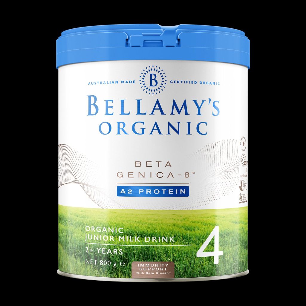 Sữa bột công thức Bellamy A2 Organic Úc 800g Số 1,2,3,4 với công thức được bổ sung Wellmune® Beta Glucan, một thành phần chứng minh lâm sàng hỗ trợ tăng cường hệ miễn dịch và giảm nguy cơ mắc các bệnh viêm nhiễm đường hô hấp trên cũng như cảm lạnh thường gặp ở trẻ.