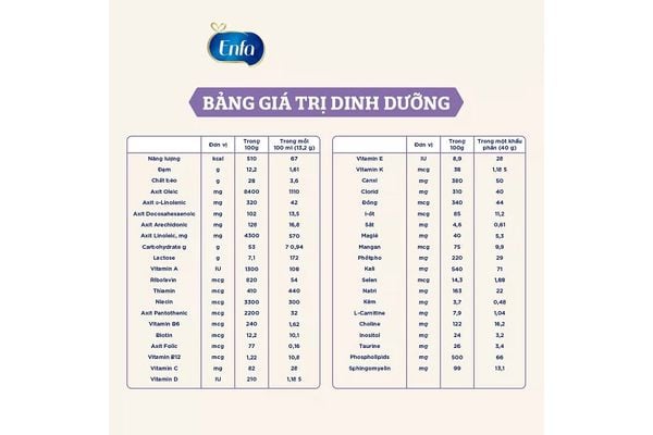 Giá trị dinh dưỡng Sữa bột công thức Enfamil Gentle Care A+ Neuropro 350g (0-1Y)